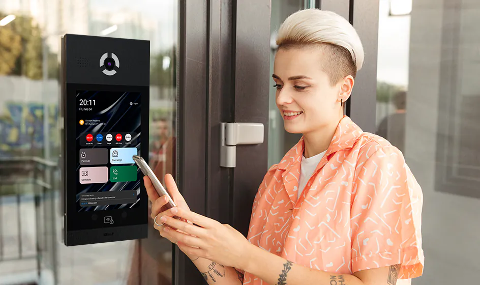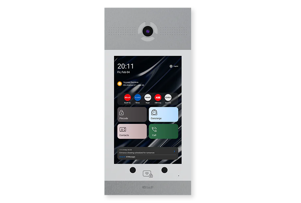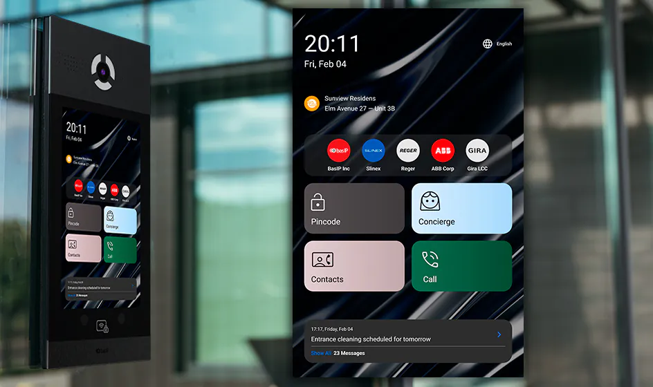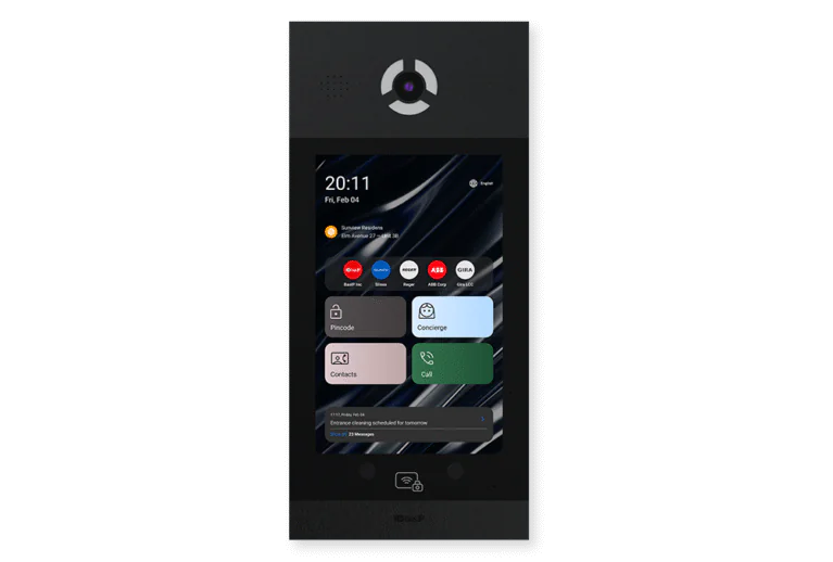 The ability to display informational messages, including residential complex messages where this panel is installed, and show ads, videos with sound, HTML-content to notify users or inform visitors.
