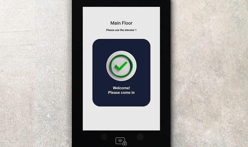 After the door has been opened for the visitor, the lift number is displayed on the screen of the call panel, which will take him to the desired floor.