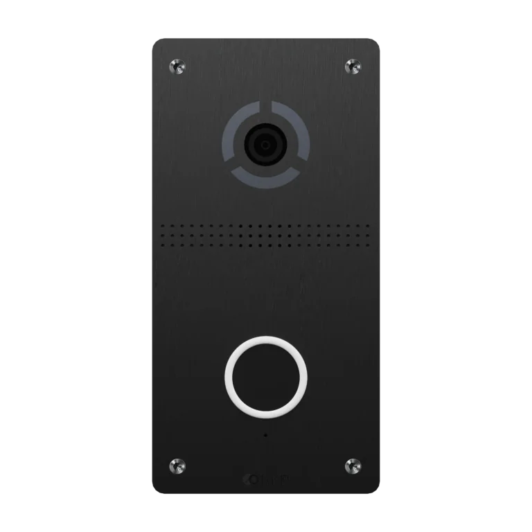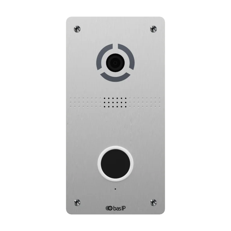 The BAS-IP AV-05FD IP door intercom panel features a stylish, slim design available in black, silver, and gold. The aluminum casing ensures durability and longevity, while the flush mounting ensures seamless integration into any environment.